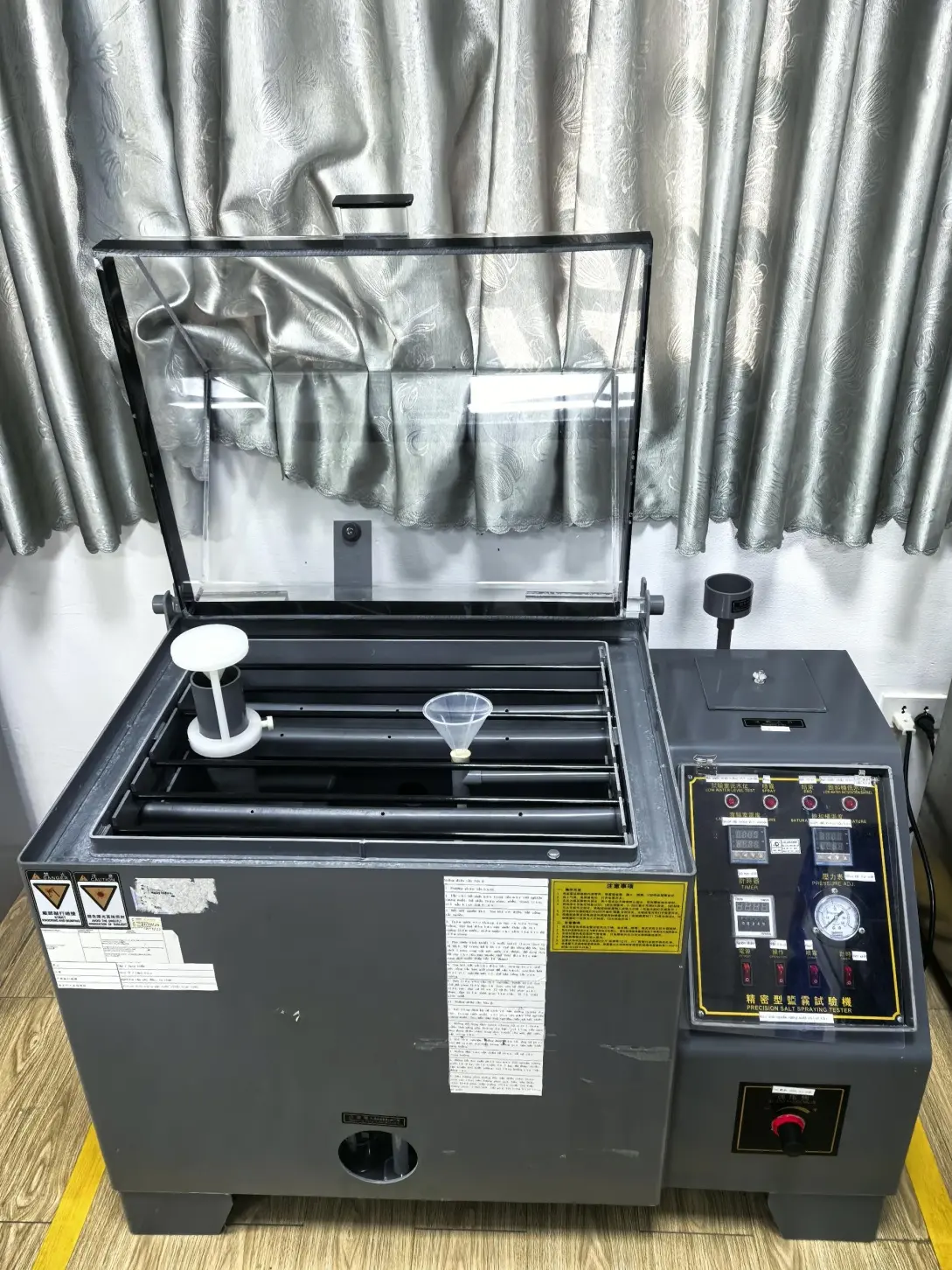 ● Ausrüstung und Probenvorbereitung: Überprüfen und reinigen Sie den Salzsprühtester, um einen normalen Betrieb sicherzustellen, und behandeln Sie die Proben vor.